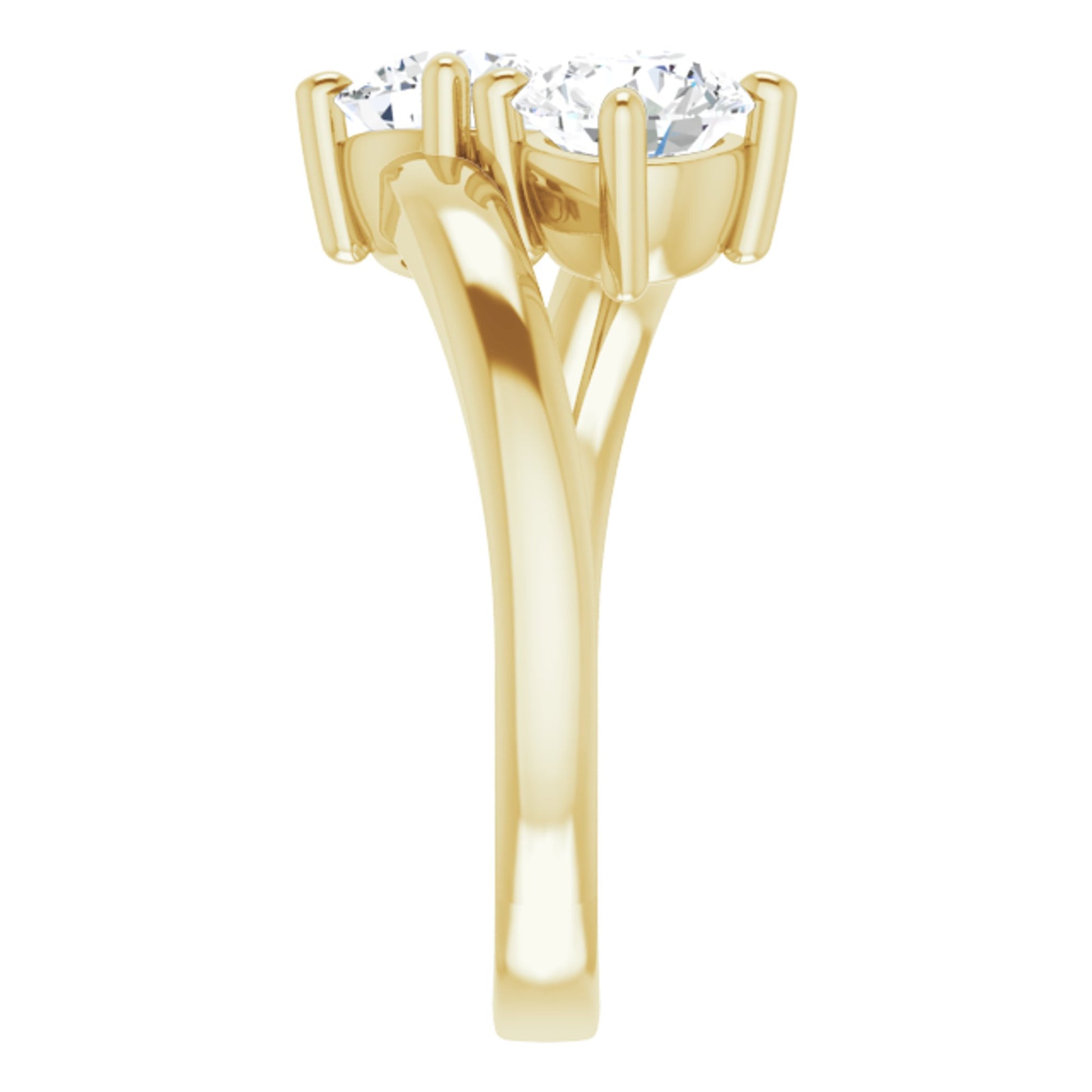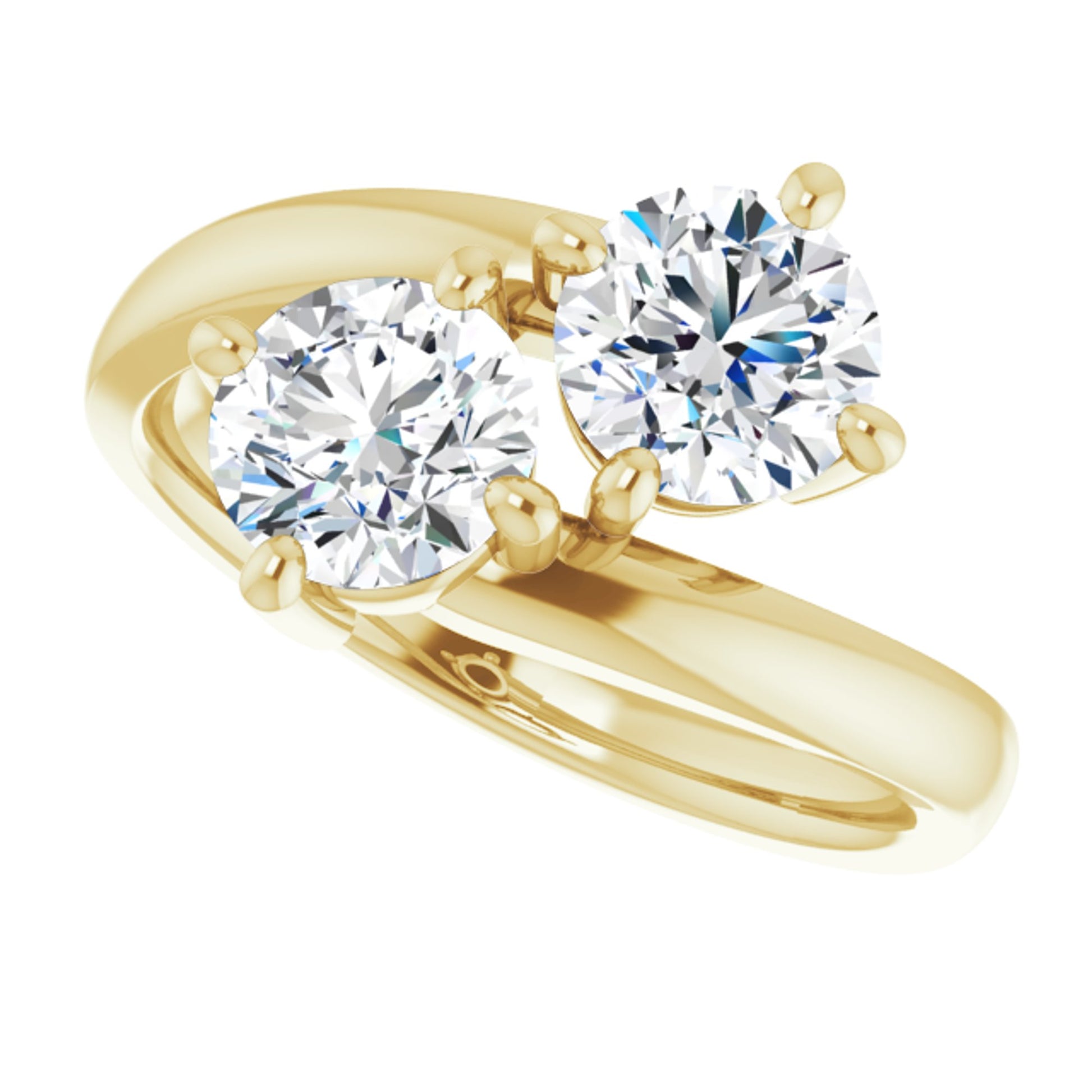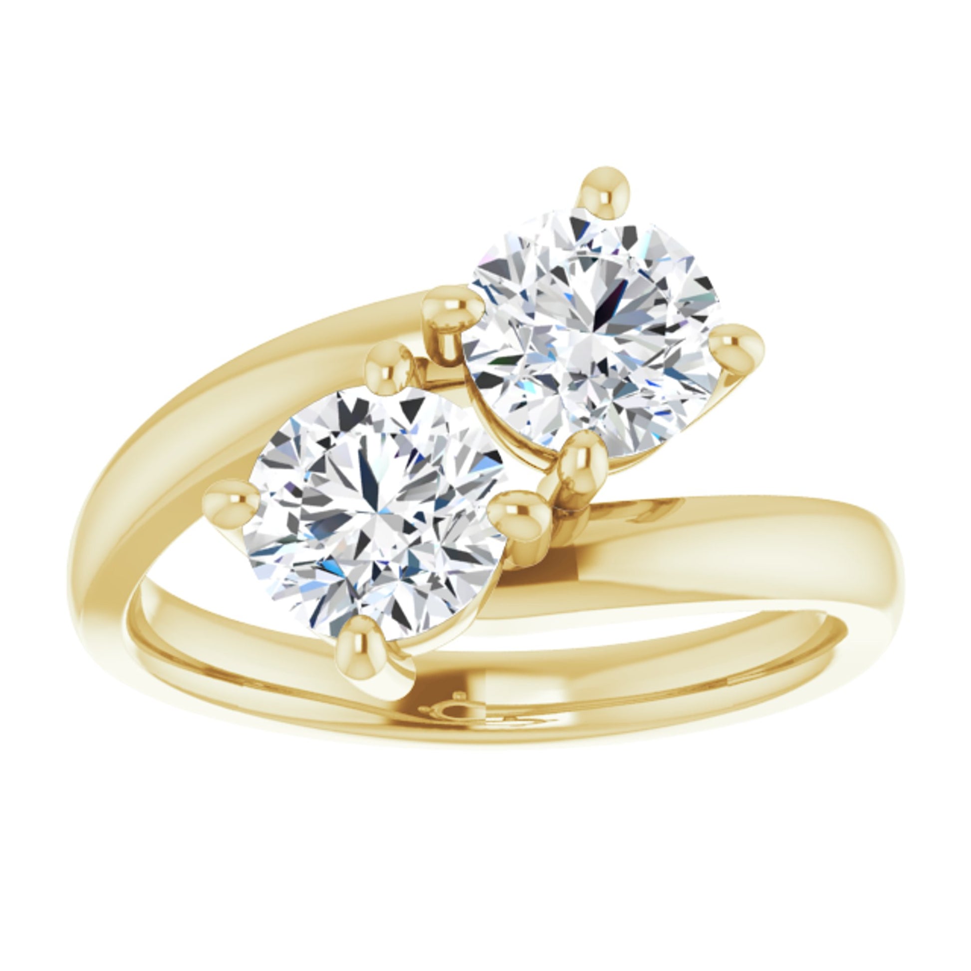 14k Yellow Gold Simple 2 Stone Ring with Round Brilliant Cut DNA Gemstones