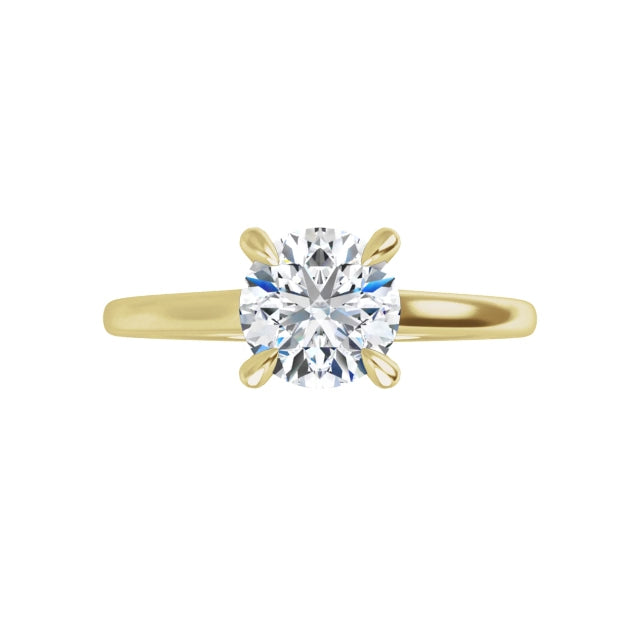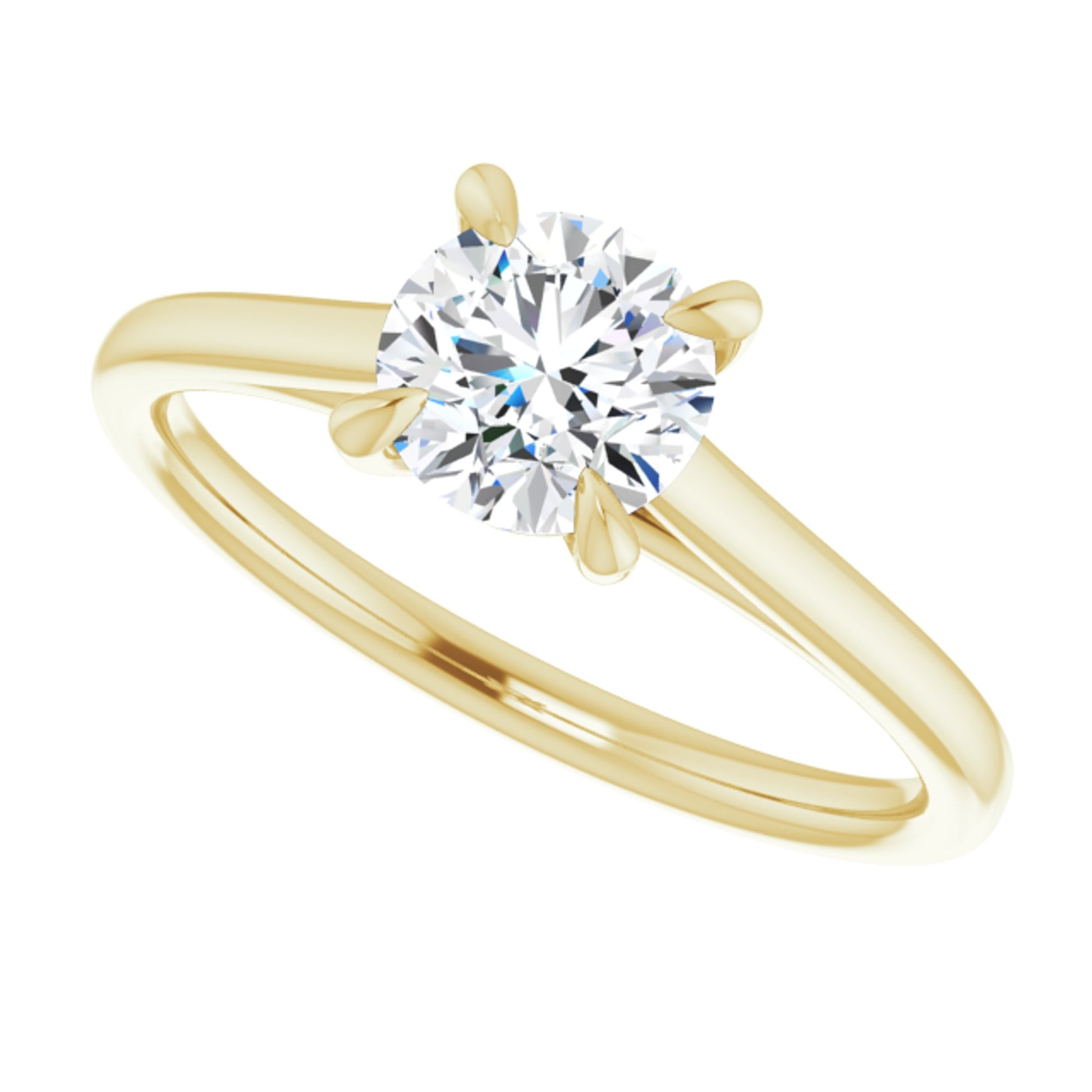 14k Yellow Gold Solitaire Claw 4-Prong Tapered Sides Ring with Round Brilliant Cut DNA Gemstone