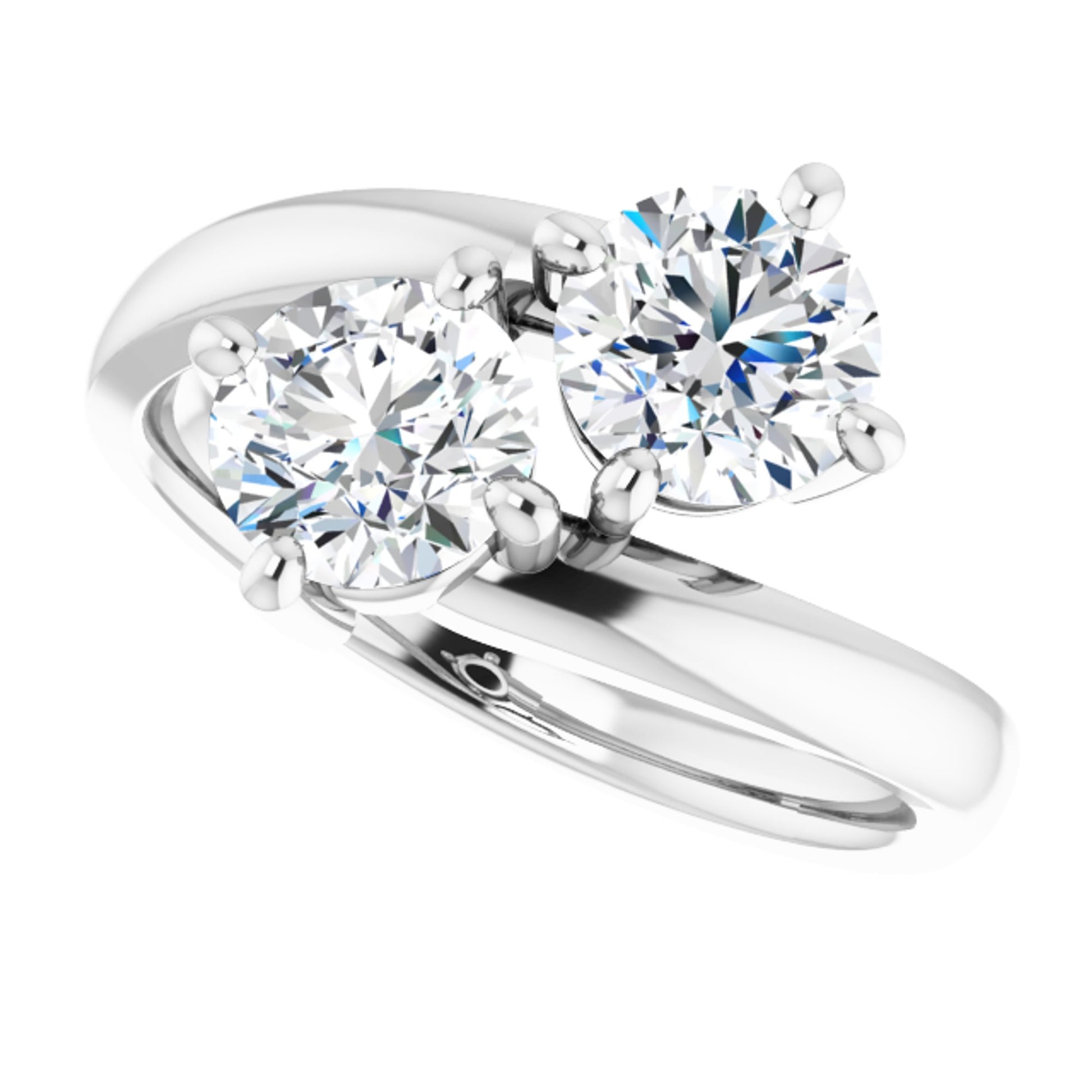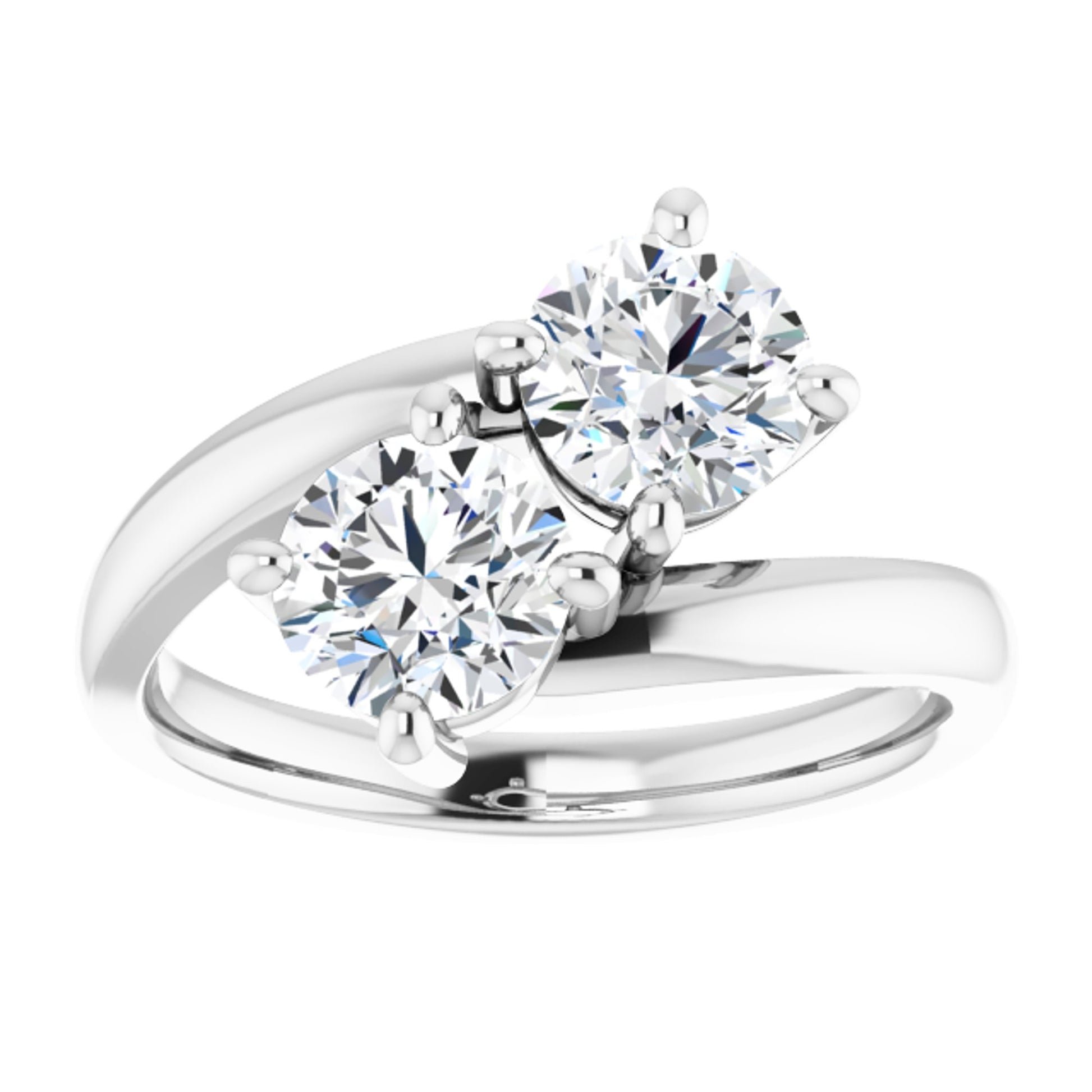 Sterling Silver Simple 2 Stone Ring with Round Brilliant Cut DNA Gemstones