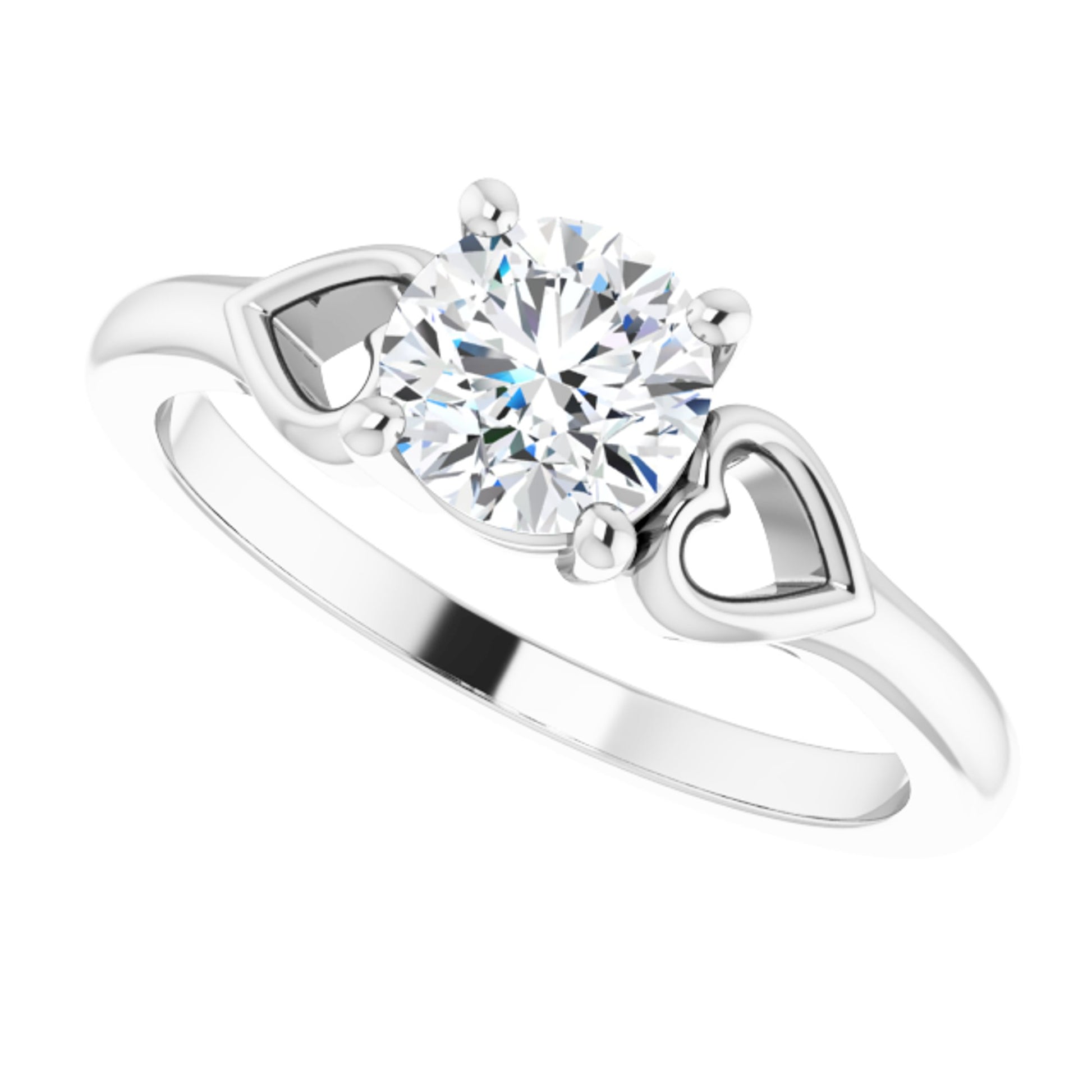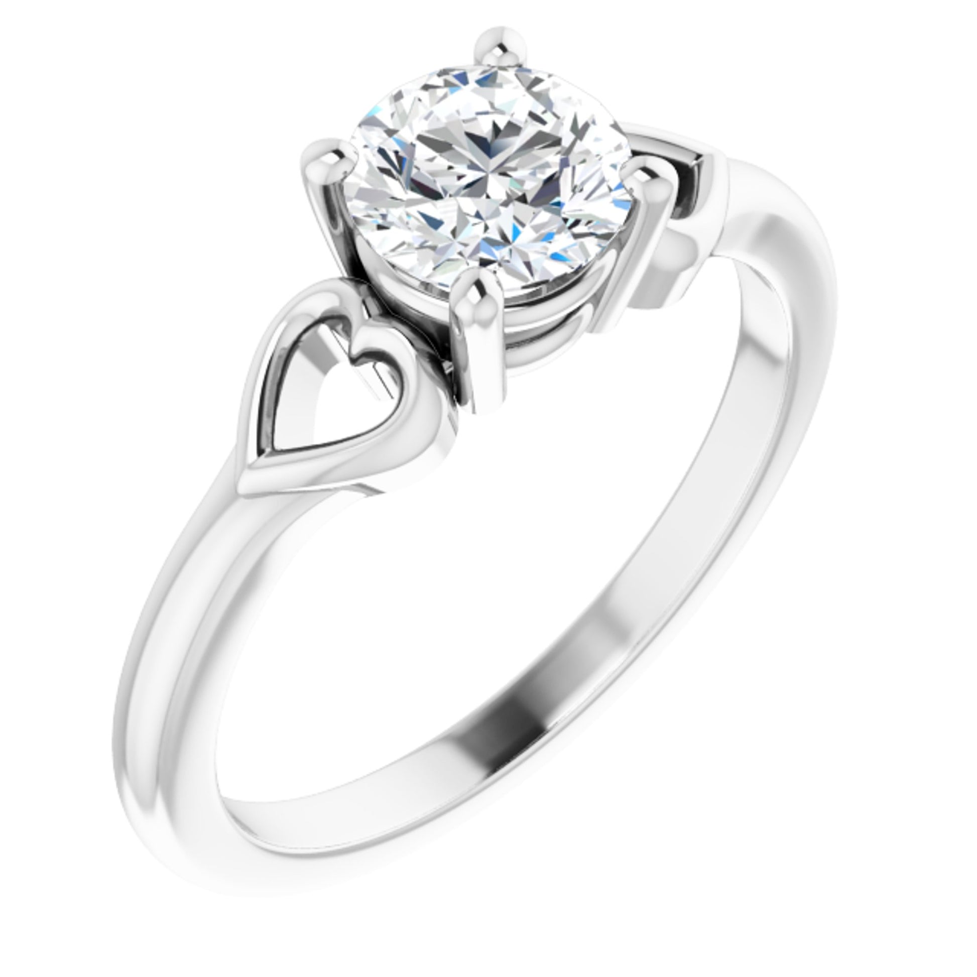 Sterling Silver Solitaire Heart 4-Prong Ring with Round Brilliant Cut DNA Gemstone